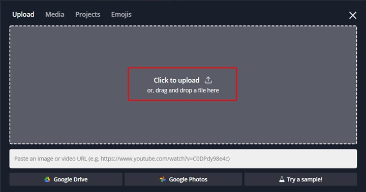 Step 3. Then click to upload your images or just drag and drop your images here. You can also upload files from Google Drive and Google Photos.
