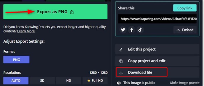 Step 5. After creating your Discord emotes, you can export it by clicking Export as PNG from the right bottom corner. Then click on Download file to get this Discord emoji to your computer.