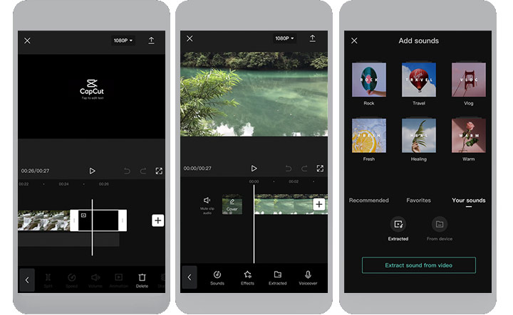 Solution 2: If you already prepare a piece of 60-second music on your portable device, use the Sounds feature of CapCut to merge the long music with the video, and then share the resulting video on TikTok right off the bat.