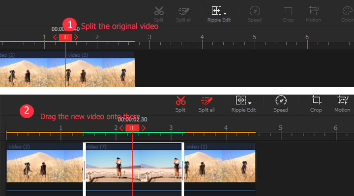 Step 2. Move the playhead to the position where you’d like to add the new video clip. Hit Split.