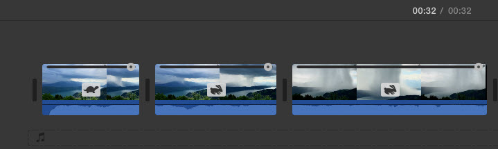 Step 2. You can increase the clip speed by dragging the speed slider to left or reduce the clip speed by dragging the speed slider to left. There will be either a turtle or a rabbit icon on the clip telling you the clip speed has changed.