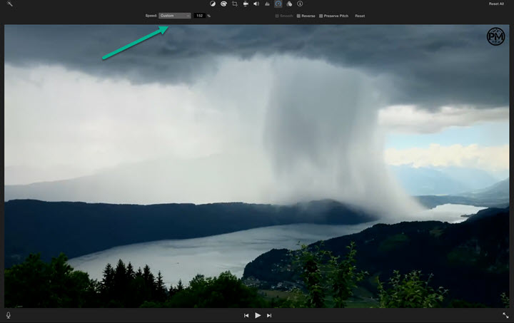 iMovie is a must-have video editor for Apple users. It perfectly works and produces nice results when it comes to speed alternation. There are two ways to change clip speed in iMovie: the speed pop-up menu and the speed editor. The first one gives you full controls of clip speed, including custom speed adjustments, fast and slow modes, free frame, reverse and preserve pitch. The speed editor allows you to alter clip speed directly in the timeline. Moving the speed slider to left accelerates a clip with a shorter duration; moving the speed slider to right slows a clip with a longer duration.