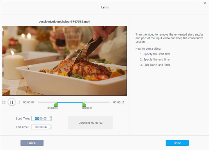 There you can simply move the two sliders, or set the Start Time and End Time to trim your snap video, and based on the same operations, you can cut other Snapchat videos.