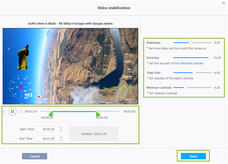 Step 4. Now it is time to remove the dead time at the start and the end of the clip. This would be very simple. You just need to move the play-head and play-tail to locate the part of the clip which you want to save.