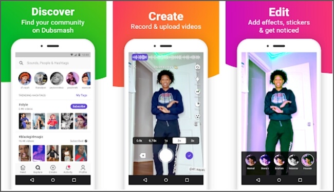 Dubsmash is also an option to go when you need to make a lip sync video on iPhone or Android, which has the world’s largest selection of quotes from your favorite TV shows, songs, movies, and internet trends. You are allowed to upload your own audio files, and you can add filters or text animations to the recordings. Making a lip sync video with Dubsmash is super simple: just select one of the audio files that are available and activate the camera, then try to move your lips as if you're singing or reading. After recording, you can save your videos to your phone or share with friends. Let's try it now!