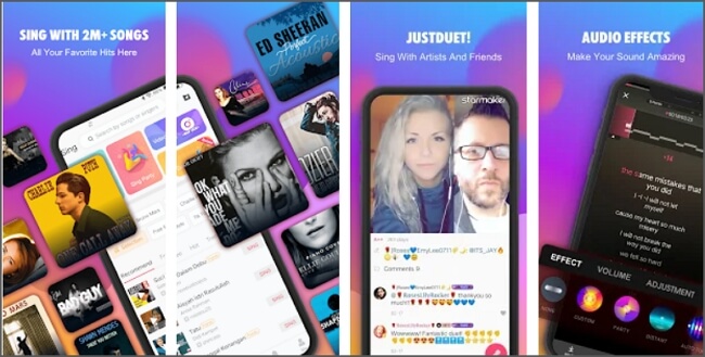 Featured as one of the most popular singing apps in Google Play and App Store, StarMaker has over 50 million users globally, and it lets you make lip sync videos with your favorites songs available in this app's collections. Moreover, it's a karaoke app that you can record your natural voice with various voice effects like Distant, Warm, Vinyl, Party, Fascinating, and then edit your recorded videos. And you can sing in the live broadcast, so the whole world can listen to you. Just try to make a lip sync video and share your sweet voice with others!