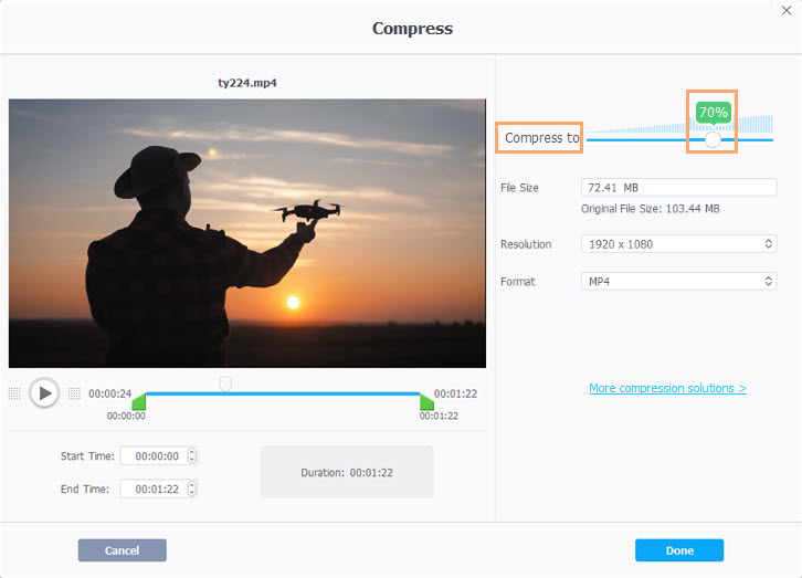 This method is best for: Non-techie users who want to make MP4 smaller to a certain size, by easily assigning a percentage number to compress the source video.