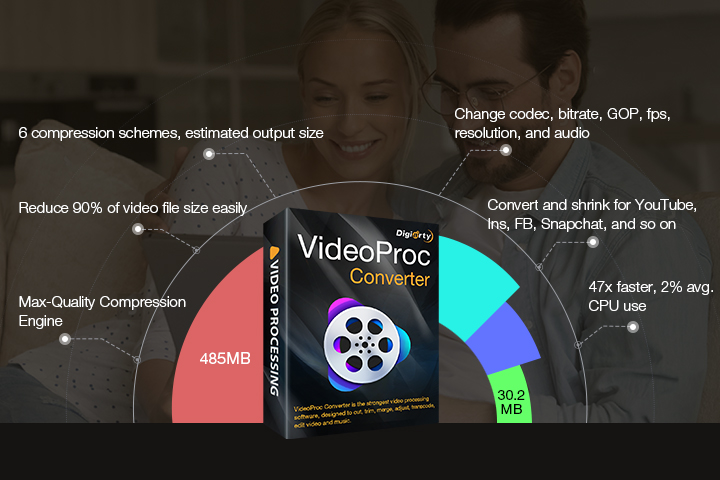 VideoProc Converter AI is a one-stop video processing software, with video compressor, editor, downloader and video toolbox built-in. It is lightweight and fast to use, with 420+ formats supported. You can make MP4 smaller by simply dragging a slider to compress the video (Up to 90% smaller).
