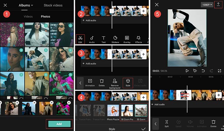- Only supports exporting video in 1080p at most (black bars on horizontal videos)