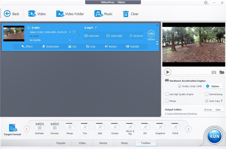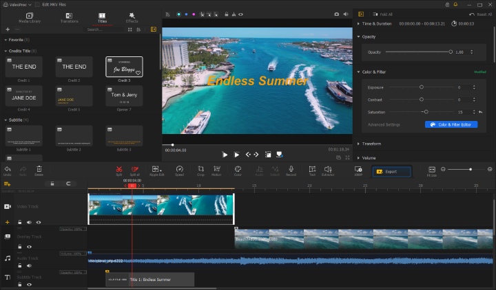 VideoProc Converter AI is a one-stop video processing software with a built-in linear editor. You can trim, cut, rewrap, edit tracks, add video effects to your MKV files without any hassle. Its GPU accelerated engine helps in undertaking video editing work while diminishing CPU usage. In VideoProc Converter AI, you can edit MKV files without any quality loss or going through redundant re-encoding work.