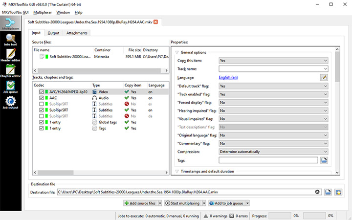 - Will not keep multiple audio and subtitle tracks of the original MKV file