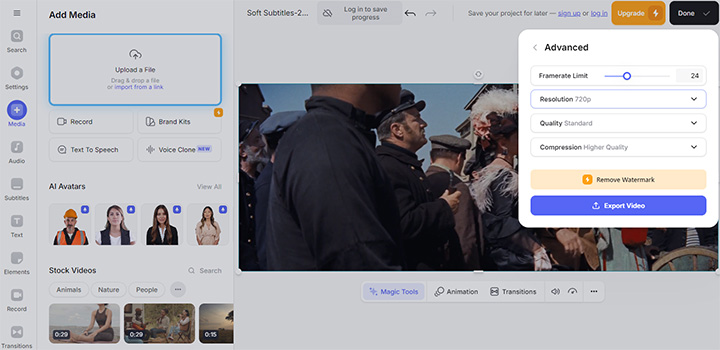 However, VEED.io will only allow you to export MKV videos within 10 minutes at a maximum resolution of 720P when using a free account. It will also put a watermark on your outputs. To break through these limits, you'll need to pay at least $12/mo per user. That's even more expensive than many professional NLEs. And the uploading and downloading process could take forever if you are working with something bulky.