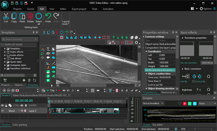 VSDC is a free video editing software for Windows that supports a wide range of video formats, including MKV. It offers non-linear editing, which allows you to place video clips in any position on the timeline. VSDC supports 4K and HD exports, ensuring your videos maintain high quality. The chroma key and hardware acceleration are available for the paid version. Besides, it comes with a variety of video effects and filters, including color correction, transitions, and audio effects, enabling you to enhance your MKV files easily.