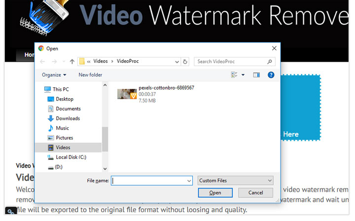 Step 2. Hit Click. Double-click the original video that has the unnecessary logo from the pop-up file explore.