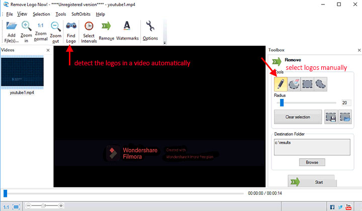 RemoveLogoNow is a lightweight (10.5MB) yet powerful tool which can help remove logo from video on Windows. It's not the most well-designed tool, but it is straightforward enough for beginners. The major plus of RemoveLogoNow comes with the Find Logo tool which lets you detect the logos of the imported video automatically. Surely, the regular logo selection tools are also available here for letting you choose the frames with logos manually.