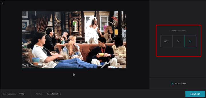 Step 2. Choose a reverse speed after uploading your YouTube videos. You can set it to 0.5x, 1x, and 2x speed.