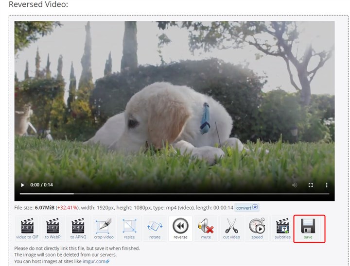 When it comes to processing videos online, EZGIF always emerges as an option for most users. It is the ultimate video processing tool that enables users to edit videos, create GIFs, convert video formats, convert image formats, convert video to GIFs, convert video to images, etc. It supports various video formats like MP4, AVI, WEBM, FLV, MOV, MPEG, 3GP, and other video files, but it imposes restrictions on files size to 100MB and there is no option to mute the sound or change the reversing speed.