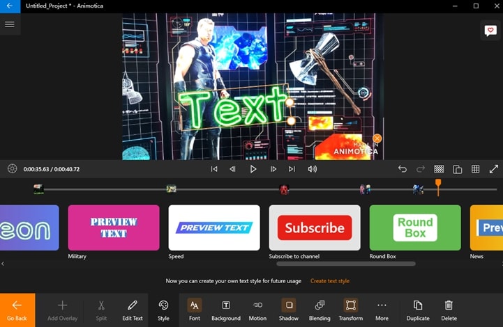 If you prefer the simpleness of a mobile video editor, Animotica is the best desktop counterpart. For beginners with zero experience of editing on a computer, Animotica comes to your aid with a UX design that resembles the ease of the good old Windows Movie Maker. Video clips you added will be displayed card by card, and in between, you can click to add transitions.