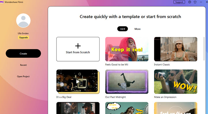 If you have zero experience in video editing and shrink from the idea of learning editing from scratch, you can give Wondershare Filmii a try. This video editing software for dummies has two modes, auto-create video with templates, or set up a blank project to have more control.