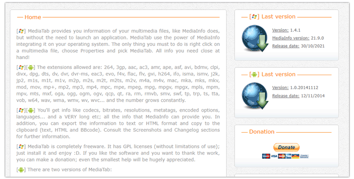 MediaTab is a compact and handy video metadata viewer for effortlessly accessing metadata information about your video files directly in Windows Explorer. This means, by simply right-clicking on a file in Windows Explorer and selecting MediaTab, users can quickly view essential details such as codecs, bitrates, resolutions, metatags, and more, eliminating the need to open any standalone application or web browser. Plus, you can export data in text or HTML format and copy it to the clipboard, which makes viewing and managing video metadata a hassle-free experience. The downside? While the Windows version of MediaTab is completely freeware with no limitations, the Android version has some feature limitations and displays ads unless you purchase the paid version.