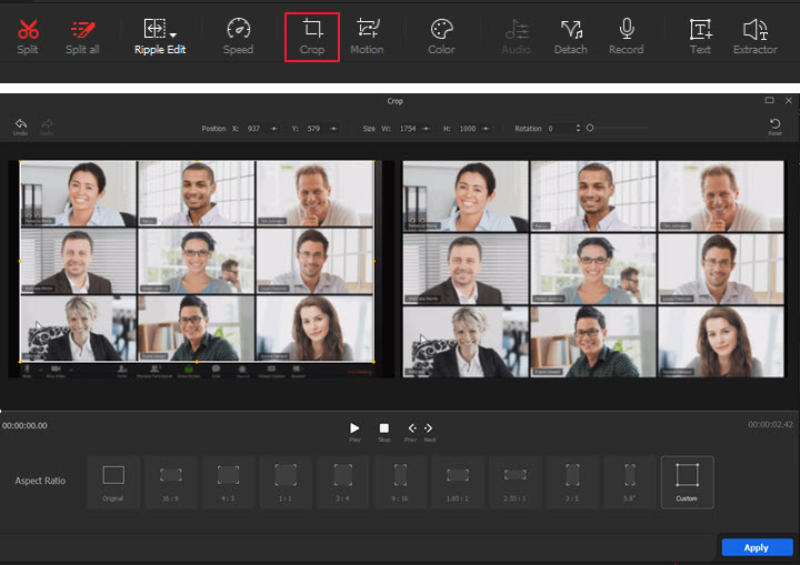 - Crop the video with a fixed aspect ratio.