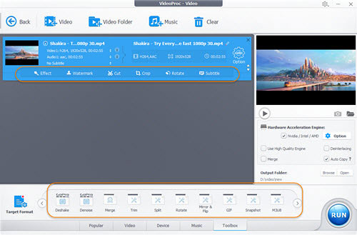 Feature review: VideoProc Converter AI is a powerful yet easy video processing software geared towards beginners for straightforward video editing. Built in the broadest range of video codec library, it supports virtually all 4K/1080p/720p videos from GoPro, iPhone, DJI drone, HD camcorders, and more, be it HEVC, H.264, MKV, MTS, or MOV.