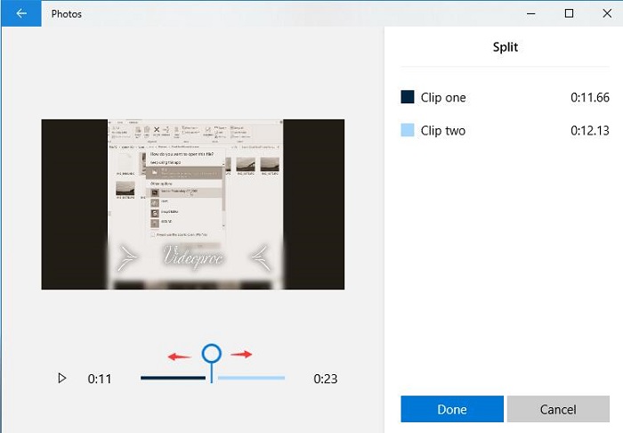 However, Microsoft Photos only allows for splitting videos into two parts at one time. To make multiple segment/clips, you need to repeat the above procedures multiple times.