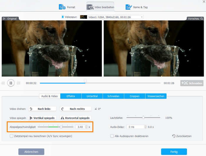 Schritt 3: Video-Wiedergabegeschwindigkeit anpassen.