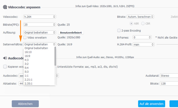 Schritt 3: Das Seitenverhältnis des iPhone-Videos ändern.