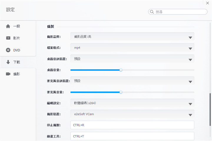 點擊右上角的齒輪圖示,並選擇「設定」以自訂捷徑、錄影畫質與輸出格式。