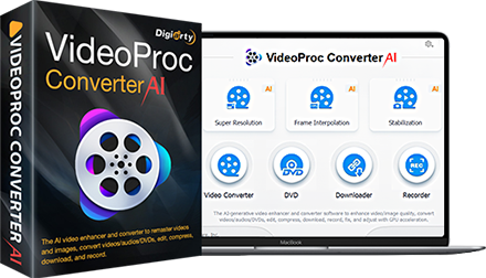 VideoProc AI 畫質增強、解析度提升、平滑、去抖動、影片轉檔、壓縮、編輯、下載與熒幕錄影功能的一站式解決方案。全方位支援影片、音樂、圖片、DVD。