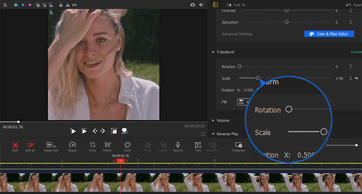 Step 1 Go to the right of the preview windows to locate the Scale and Position menu.