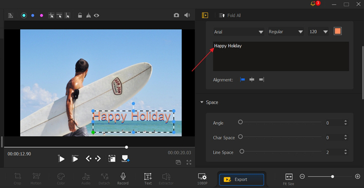 Step 2 Adjust the parameters of Text to the intended look. You can set the font, text color, font size, text space, text border, text shadow, and more.